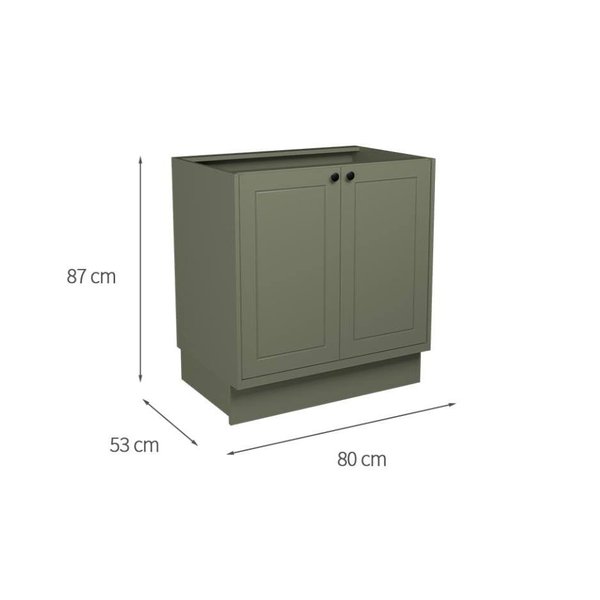Balcão 0,80m com 2 Portas– Praticidade, Organização e Estilo para Sua Cozinha ou Escritório. Possui prateleira interna, Puxador em metal com pintura em preto e dobradiças caneco 35mm com amortecimento.