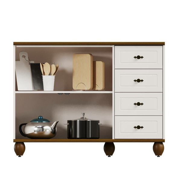 Balcão de pia conposta por 2 portas e 4 gavetas ela tem um ótimo espaço interno, fazendo a organização da sua cozinha mais fácil.