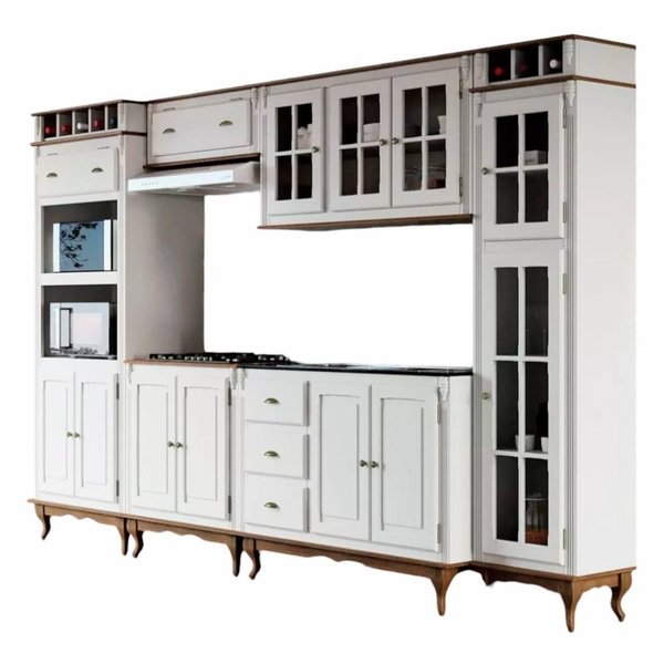 Cozinha Completa 8 Peças Estilo Luiz XV Com Portas Trabalhadas Branco